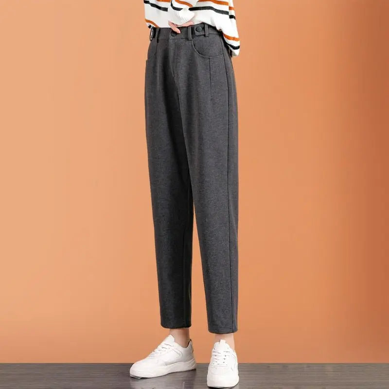 Com cintura alta que valoriza a silhueta feminina, essa calça é perfeita para combinar com looks sociais e casuais. Feita com tecido de alta qualidade e acabamento impecável, ela é confortável e durável, tornando-a a escolha ideal para o seu guarda-roupa.