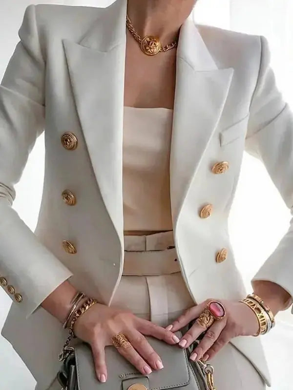 Blazer Feminino Alfaiataria - Experimente uma grande inovação no seu guarda-roupa com este Blazer. Confeccionado em poliéster, tem design liso e é ideal para ocasiões casuais. Seja moderna e elegante neste blazer que garante um visual de destaque.