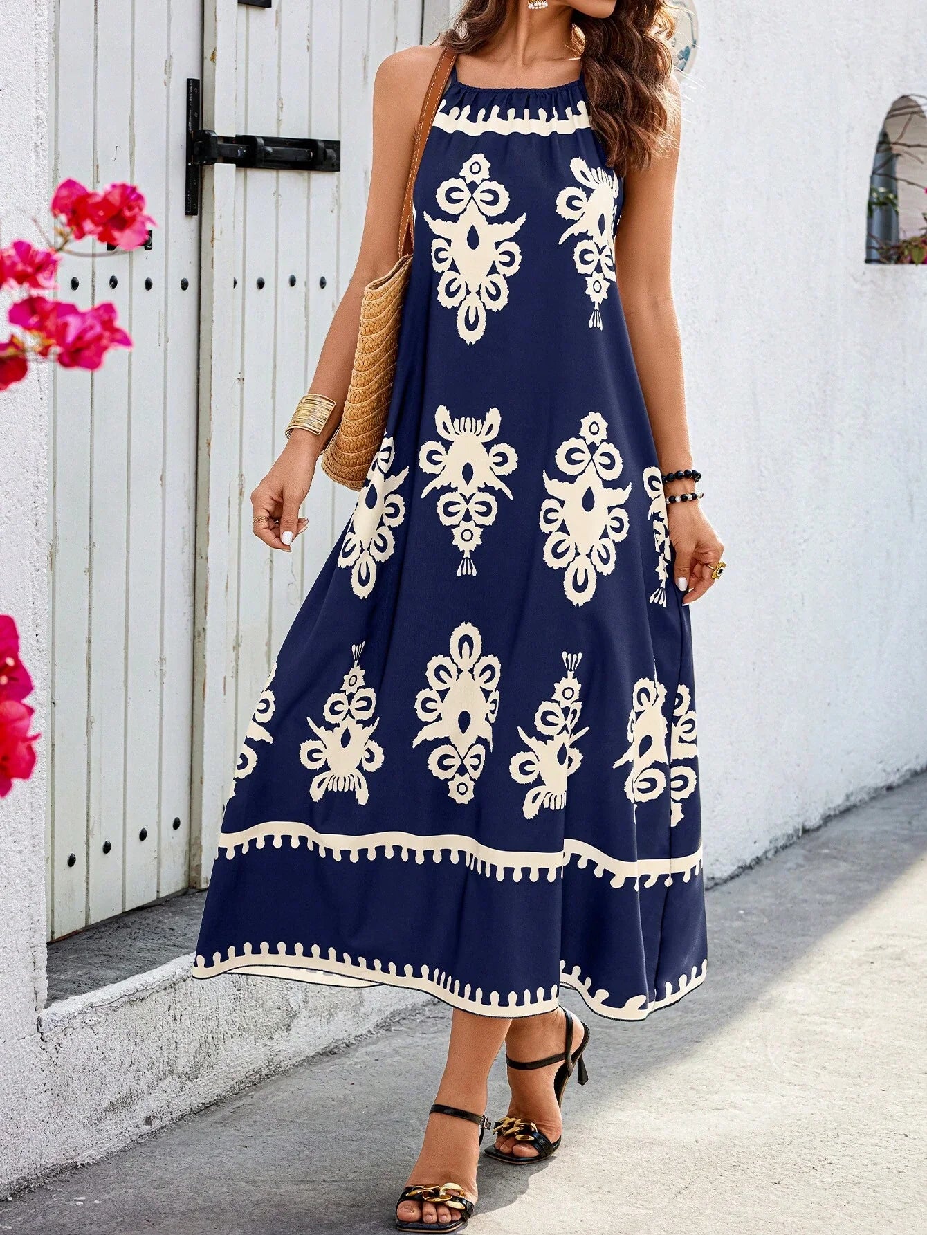 O Vestido Longo Solto com Alças Finas é a escolha perfeita para mulheres que buscam estilo e leveza nos dias de verão. Com uma estampa floral vibrante e elementos geométricos e tribais, ele combina um visual boho descontraído com conforto. Ideal para passeios ao ar livre ou momentos especiais.