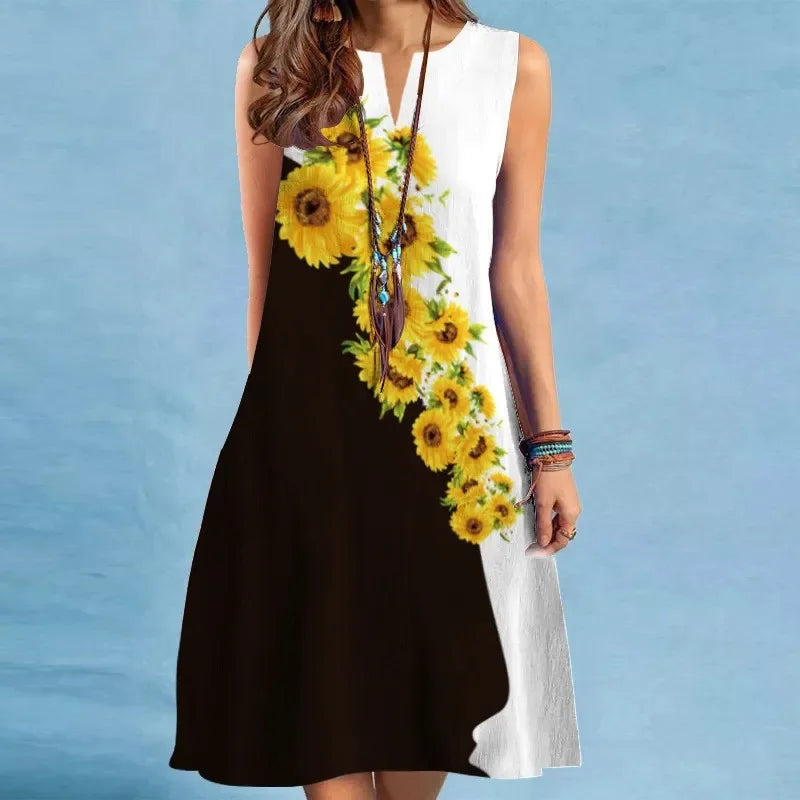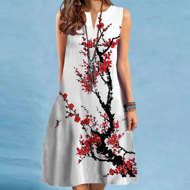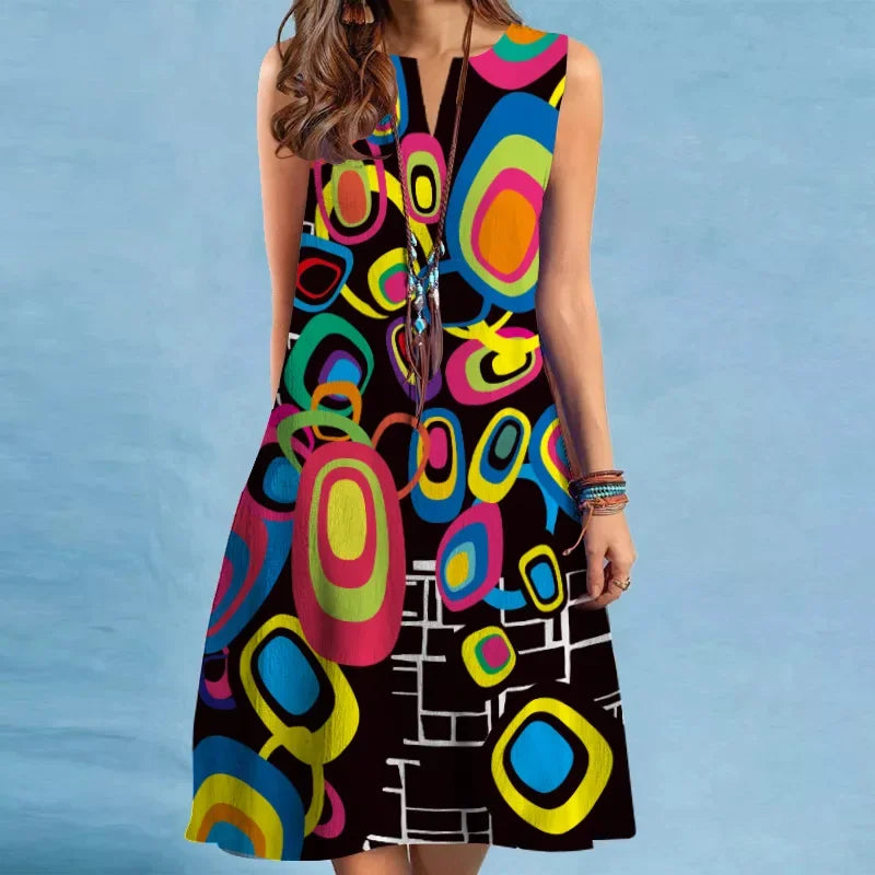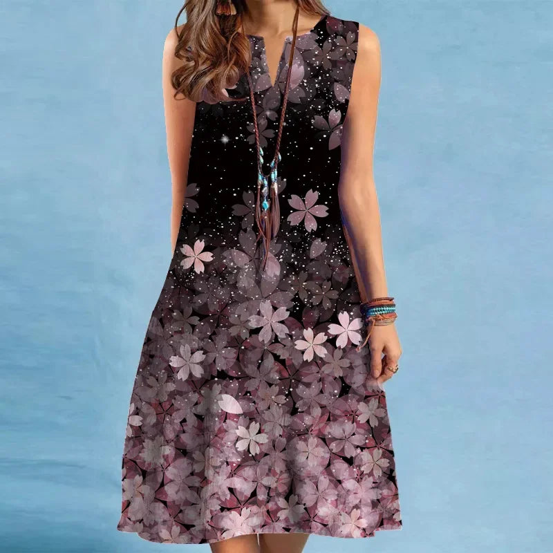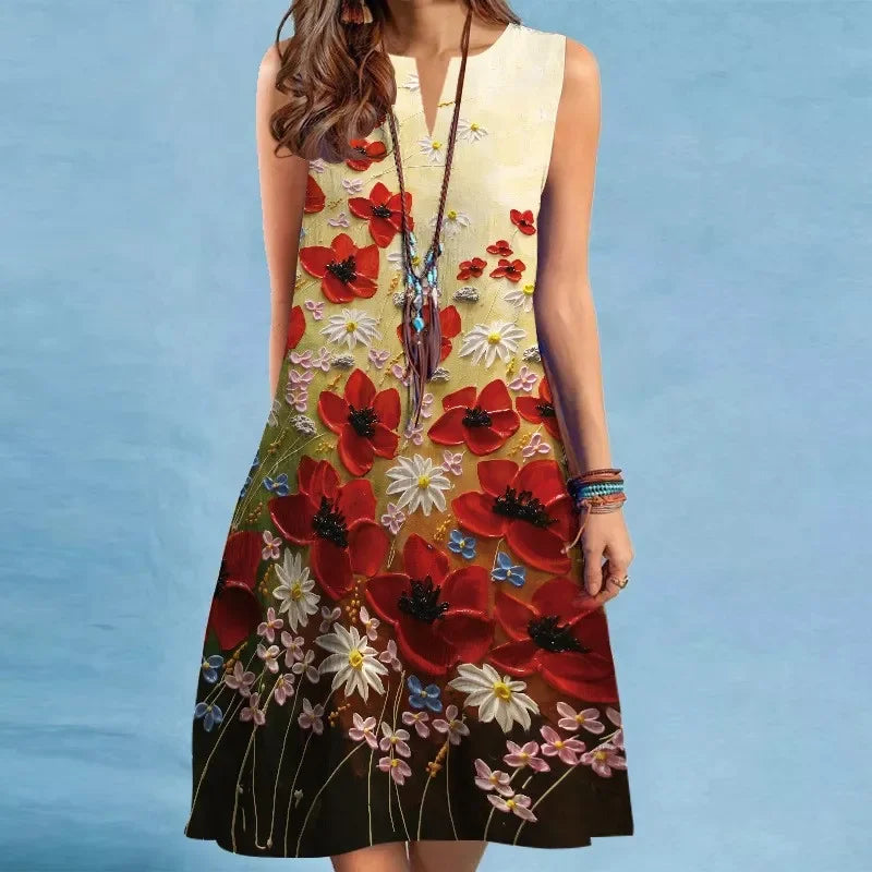 Vestido Midi Estampado Sem Mangas Amélia é leve, versátil e cheio de charme