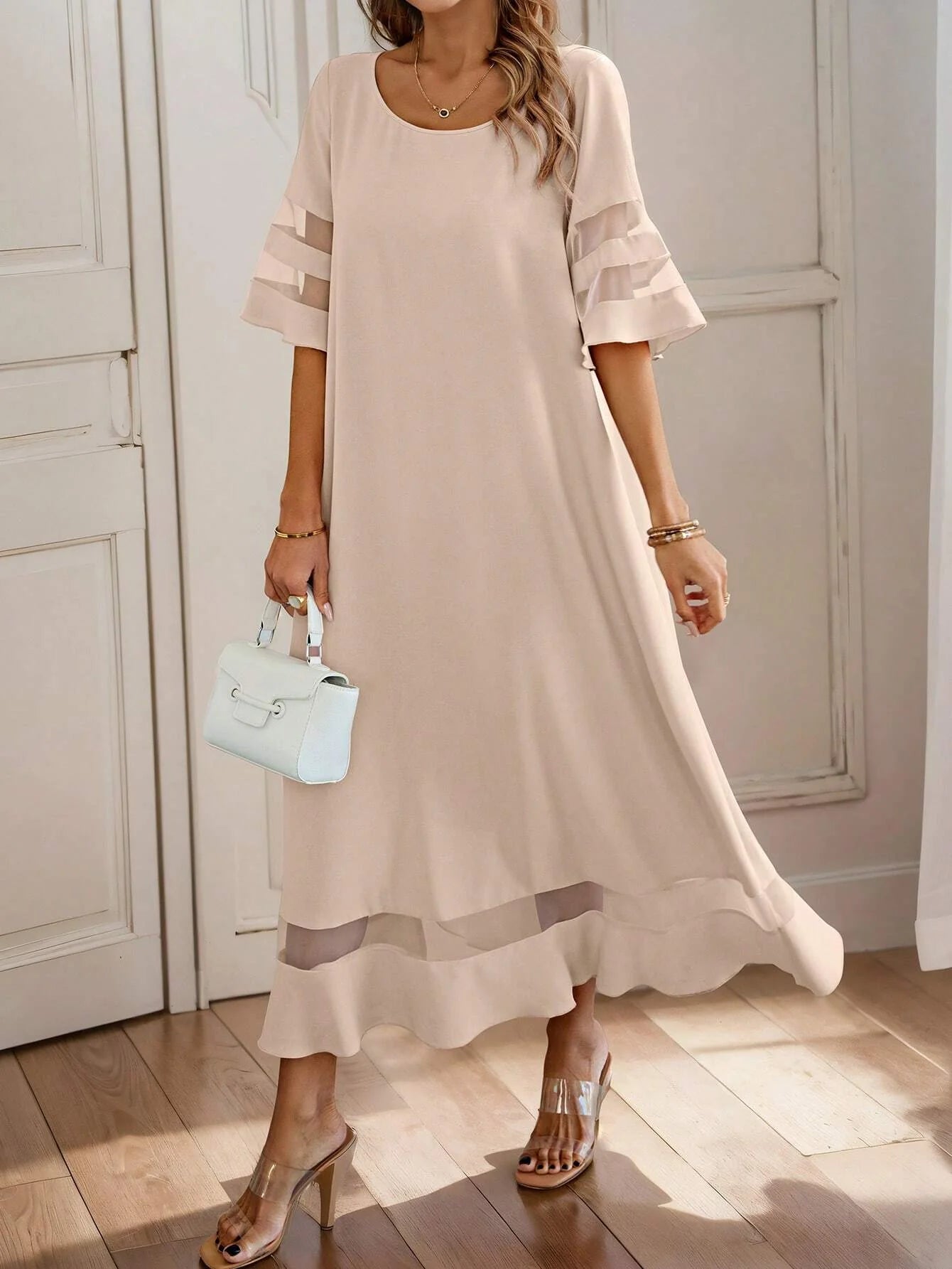 O Vestido Longo de Malha Casual é a peça perfeita para trazer estilo e conforto aos dias quentes de verão. Com gola redonda e mangas esvoaçantes, ele oferece um caimento leve e moderno. Os detalhes em laço contraste e bainha assimétrica com babados adicionam charme, enquanto a cintura natural e o cinto ajustável valorizam a silhueta.